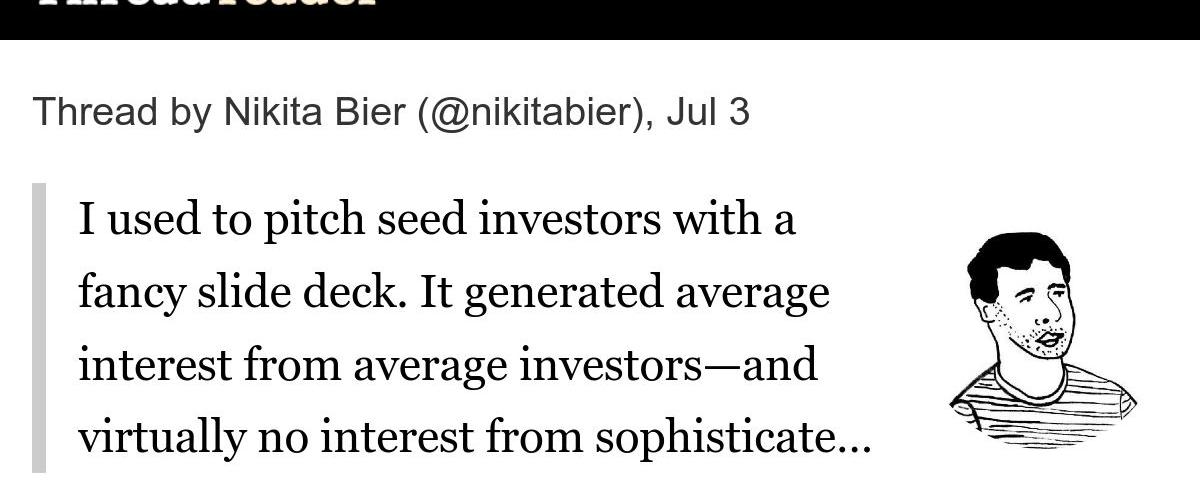 Lors de mes débuts, je présentais des pitchs élaborés aux investisseurs, sans grand succès. Après quelques mois d’essais, j’ai changé de stratégie : je leur remettais un prototype, m’absentais, puis laissais mon équipe interagir avec eux sur l’application. En revenant, je partageais ma vision à long terme, et quasiment à chaque fois, ils souhaitaient investir. Pour les produits grand public, laissez-les parler d’eux-mêmes au lieu de perdre du temps avec une présentation. Laissez l’investisseur vivre le Moment Aha par lui-même. Si la démo du produit ne les convainc pas, ils n’auraient jamais investi de toute façon.